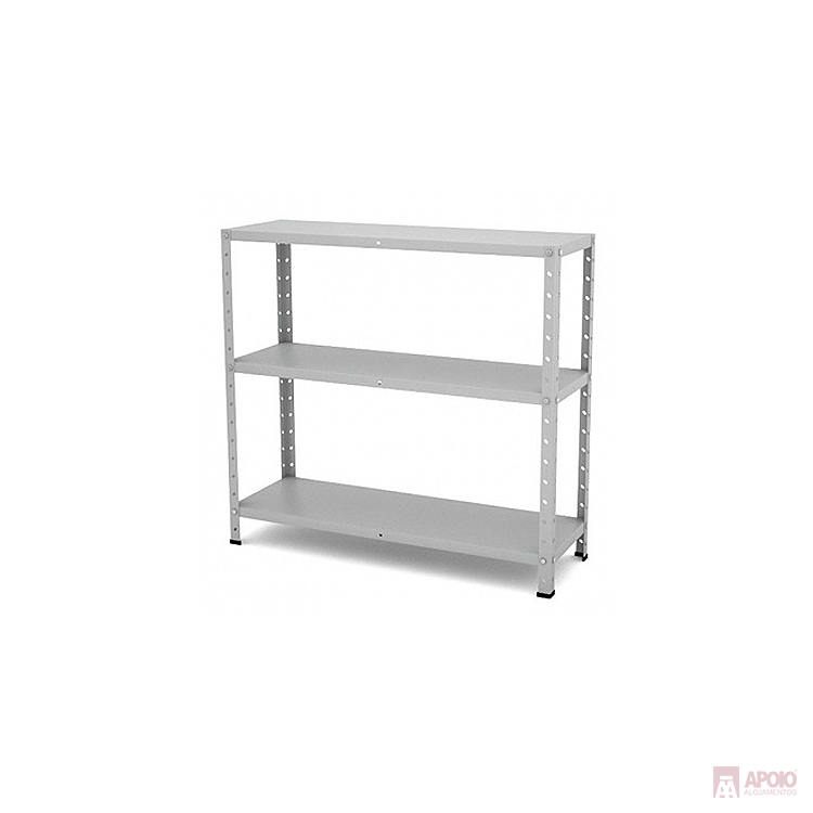 Descrição do Produto: Estrutura chapas #20 e #26 (0,90mm e 0,45mm), 3 prateleiras 920mm x 300mm, com reforço ômega fino, 4 colunas 900mm de altura, capacidade por prateleira 20kg (bem distribuídos)